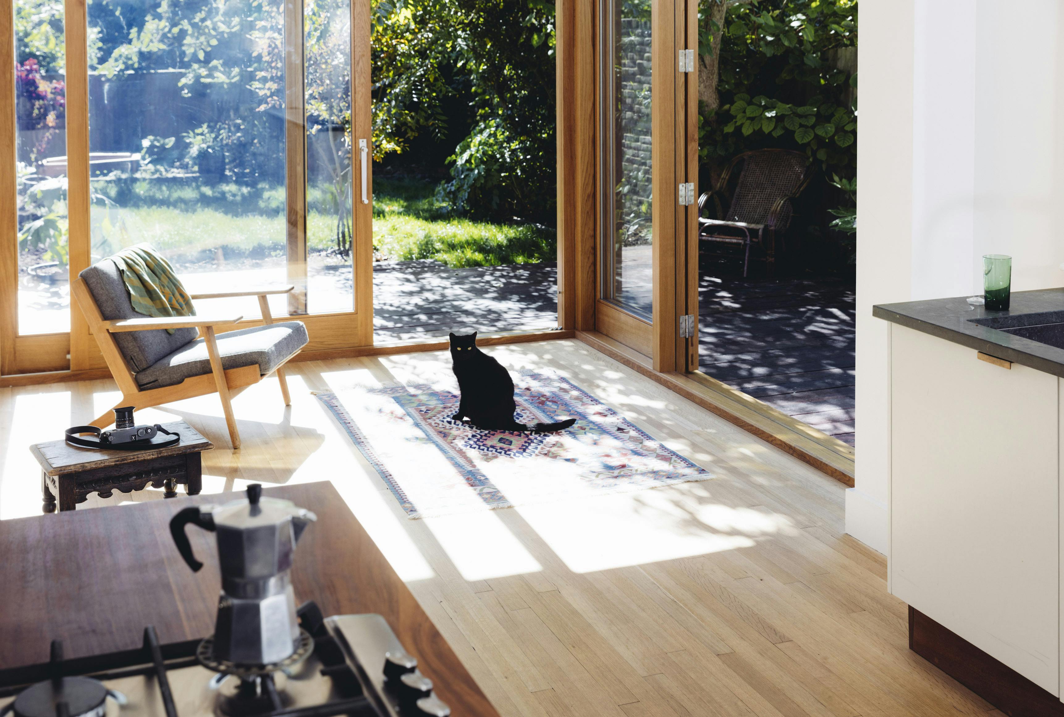 An addition in timber to a gallerist’s South London home that opens the house up to the garden. The addition merges a varied palette of timber and interlocks a number of bespoke joinery elements that extend from the cabinetry of the interior, to the framed extension, to the ground and stepped pathways of the garden outside.